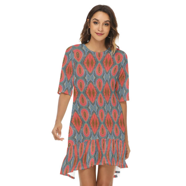 Beem All-Over Print Women’s Half Sleeve Dress With Ruffle Hem