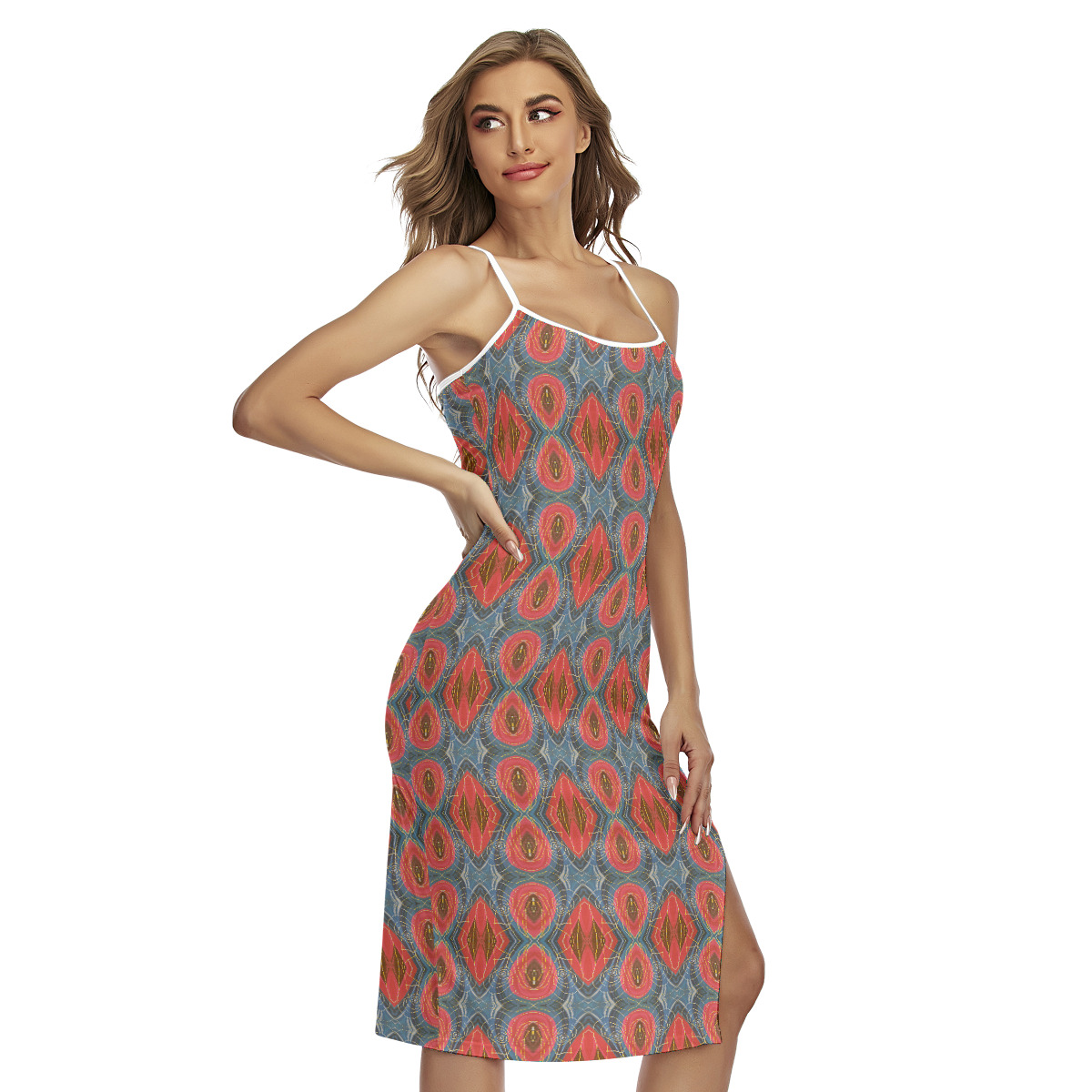 Sexy knitted suspender skirt, side slit design can properly show the shape of the legs, the back suspenders are crossed, and the beautiful back is outlined