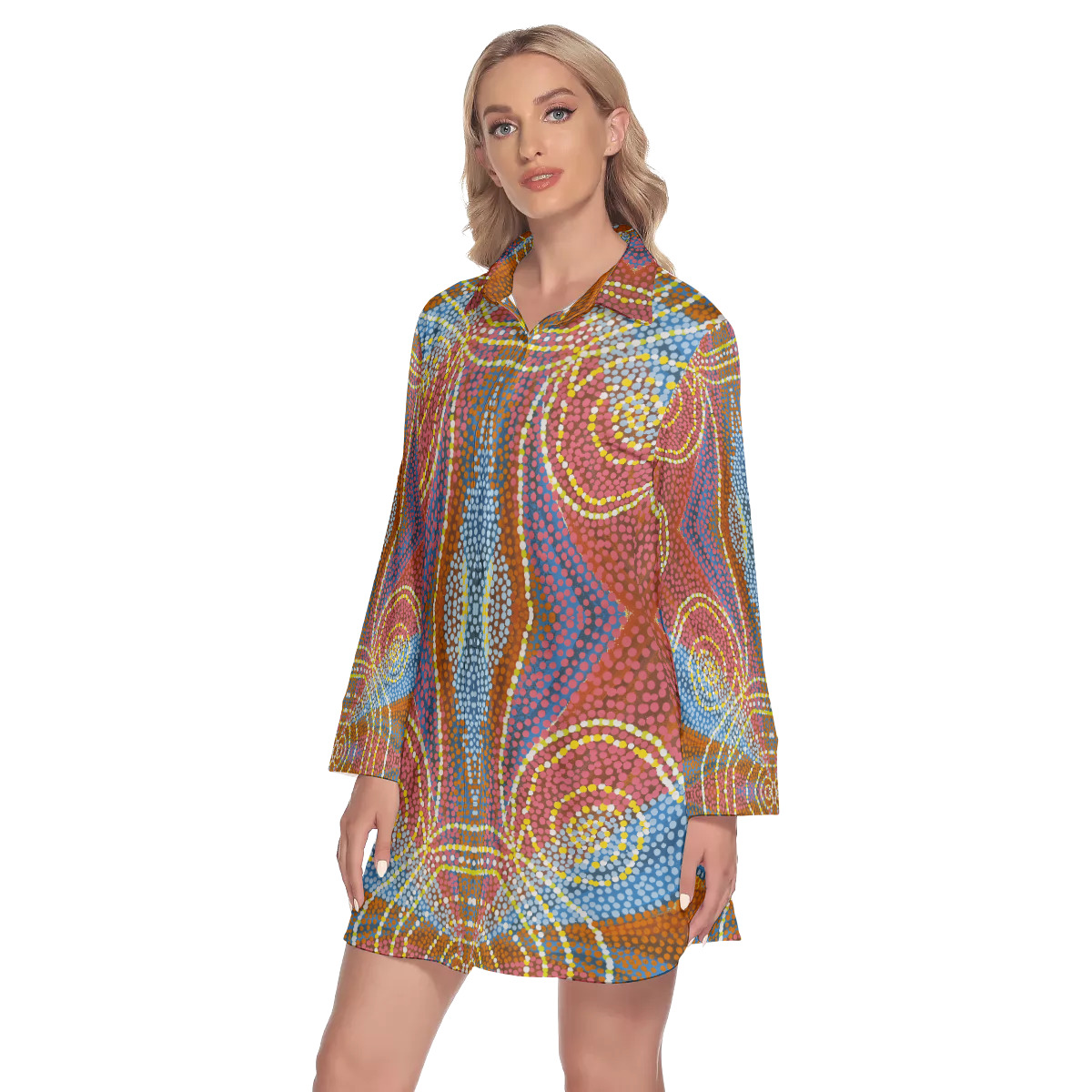Lify All-Over Print Women’s Lapel Shirt Dress With Long Sleeve