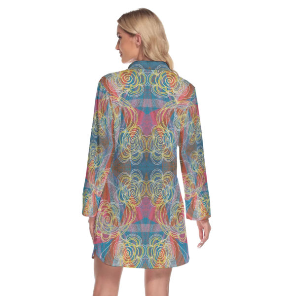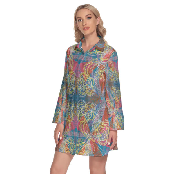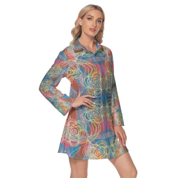 Pilli All-Over Print Women’s Lapel Shirt Dress With Long Sleeve