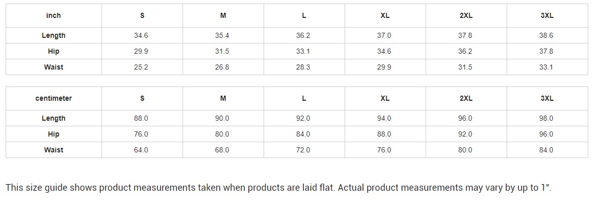 This size guide shows product measurements taken when products are laid flat. Actual product measurements may vary by up to 1″.