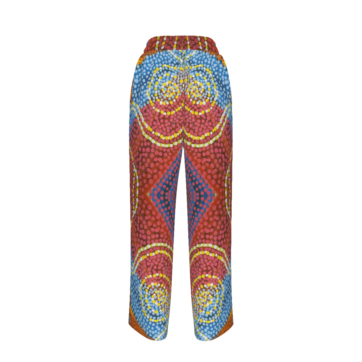 Wave All-Over Print Women’s Faux Silk Wide-Leg Pants